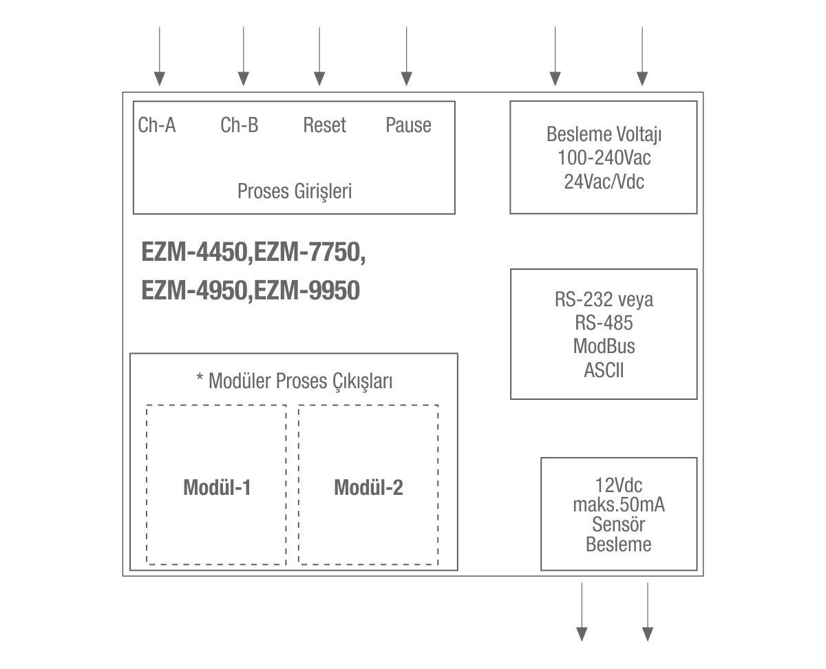 - RS-232 (standart) veya RS-485 (opsiyonel) seri haberleşme